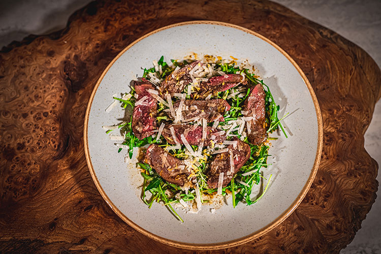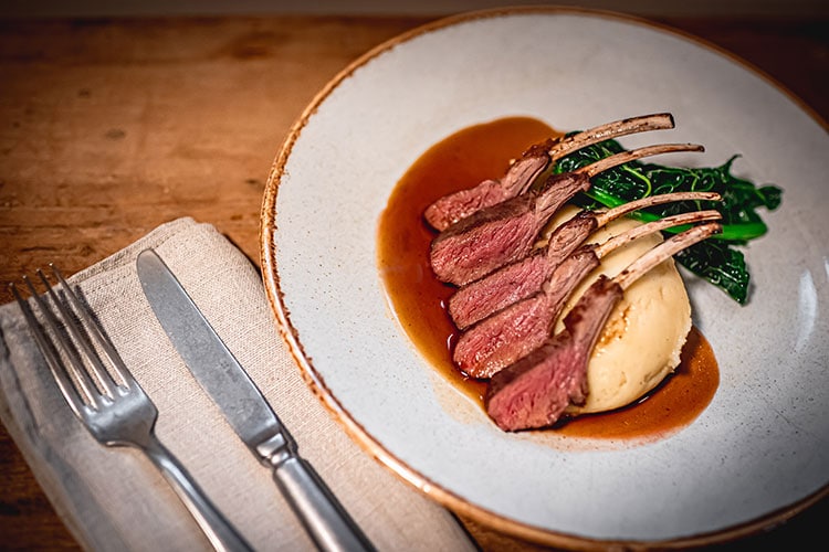 Roasted wild boar loin, mango powder, roasted apples, chilli and star anise