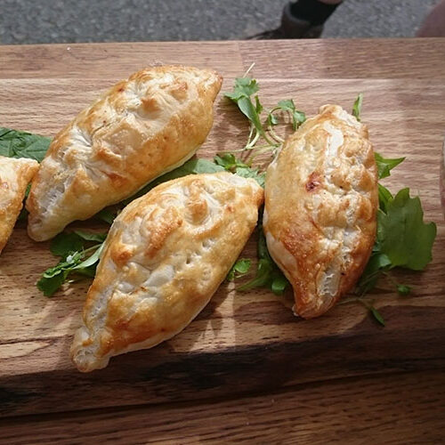 - Slice the grouse thinly and add to the pepper and leg mix. Roll out the dough to about 1/8 inch thick and cut into rounds 5-6 inches in diameter. Place a spoonful of the grouse mix in the centre of each disc, but do not overfill, you can make them as small or as large as you wish.