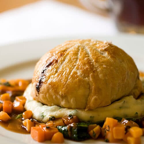 - Serving suggestion: mashed potato with parsley and gravy from a reduction of game stock