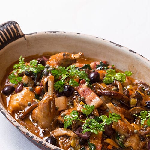 Eat Game has commissioned a rabbit cacciatore recipe from acclaimed Michelin-starred Italian chef Francesco Mazzei.Franceso, chef patron at Sartoria, in London, frequently appears on popular television cookery shows – including the BBC’s Saturday Kitchen and MasterChef – and is considered one of London’s leading chefs.Annette Cole, Taste of Game development manager, said: “‘It is great to see accomplished chefs working with game and cuts that people often don’t know how to cook.“This recipe is easy to cook at home. But it will impress, it is absolutely delicious.”Rich and hearty, this 'hunter-style' Italian stew is often made with chicken, but Francesco celebrates the wonderful taste of British game meat by choosing the subtle flavour of rabbit. Cooked with earthy wild mushrooms and salty pancetta, Francesco adds a little extra Italian flair with capers and juicy olives scattered over the top.Francesco features on the Great British Chefs website (www.greatbritishchefs), which is described as a go-to destination for food-lovers in search of recipe inspiration, technical expertise and restaurant news and reviews.Recipe courtesy of www.greatbritishchefs.com