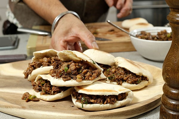 Slow cooked pork and venison shoulder with warming spices served in a quick to make bun- a lovely take on the street food burger so popular in China.