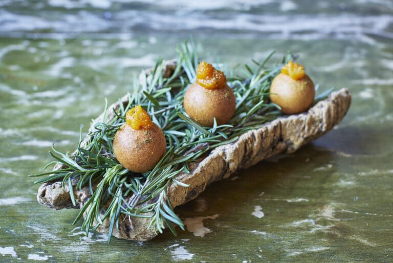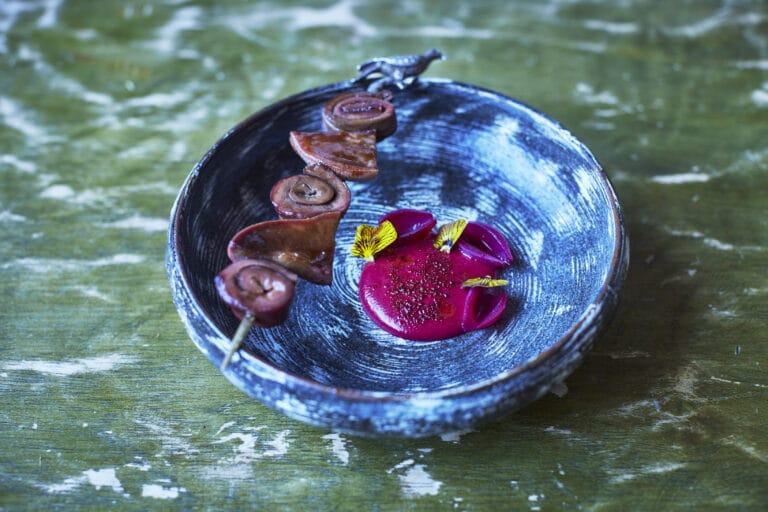Pithivier of venison with pine nuts, sultanas, cranberries and five spice