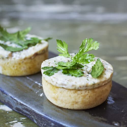 Use shop-bought crumpets and turn this into a super quick recipe, perfect for breakfast or lunch. This is a great way to use up any leftover meat from your weekend roast as well. The crumpets with rabbit butter can be enjoyed on their own or served as a side with hot soup.