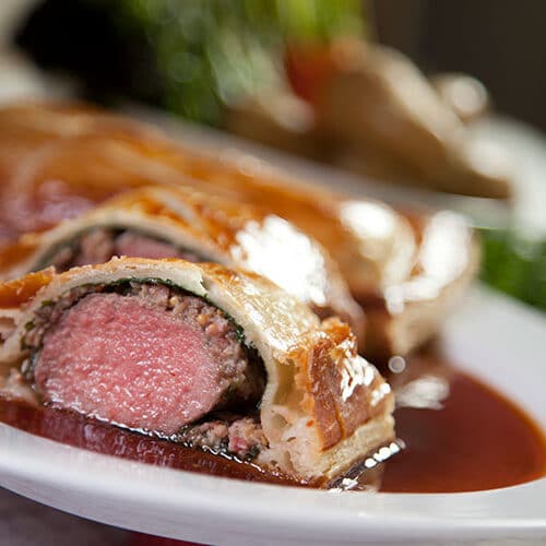 - Place the venison on the bacon mix, brush the border with the egg wash, then gently pick up one edge of the paper the pastry is laying on and roll the spinach over the venison, perfectly encasing it, it’s a very similar technique as making sushi or rolling a Swiss roll.Keep any bacon mixture to add to our redcurrant sauce.